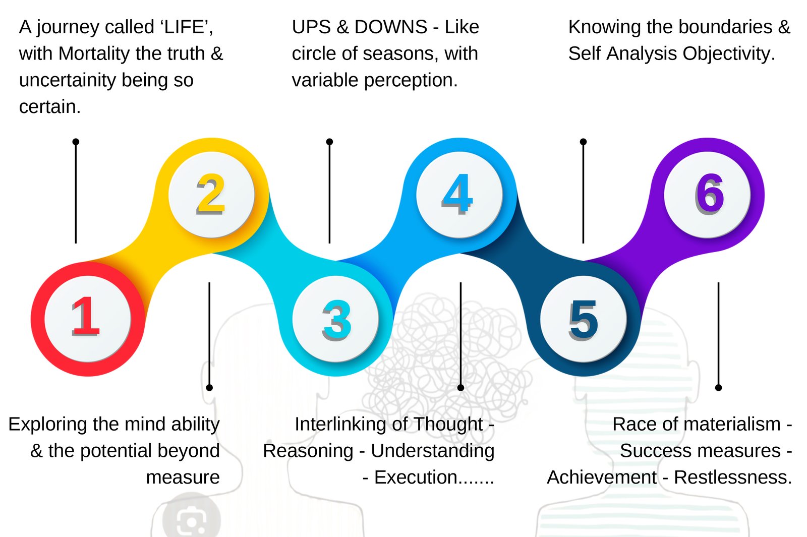 Humans are interactive by nature - actively or passively. Pleasure of Interaction is probably the bare essential (no cost involved) of life, As said ‘Action speak Louder than Words!’ But whether pre or post to the action, it would be feeling of partial accomplishment, if not supported by Interaction. At Abhivyakti, the ‘Aspects of life’ listed below are talked upon