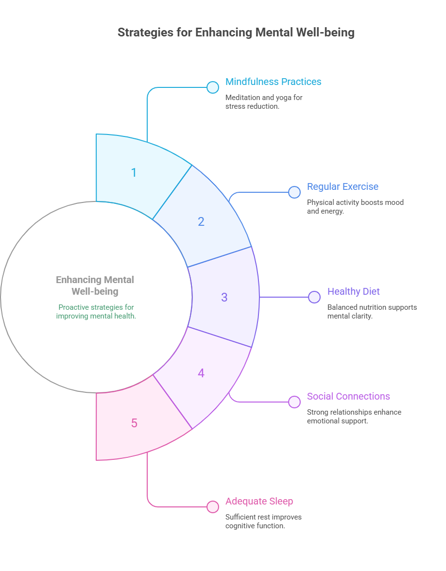 - Healthy Diet: Nutritious food supports brain and emotional health.